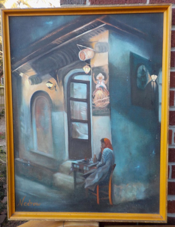 Pintura Al Óleo Original De La Ciudad De Noche, Hermoso Edificio ...