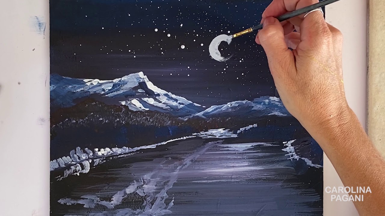 Amazon.com: CCArtist noche cubierta de nieve paisaje con pequeña ...
