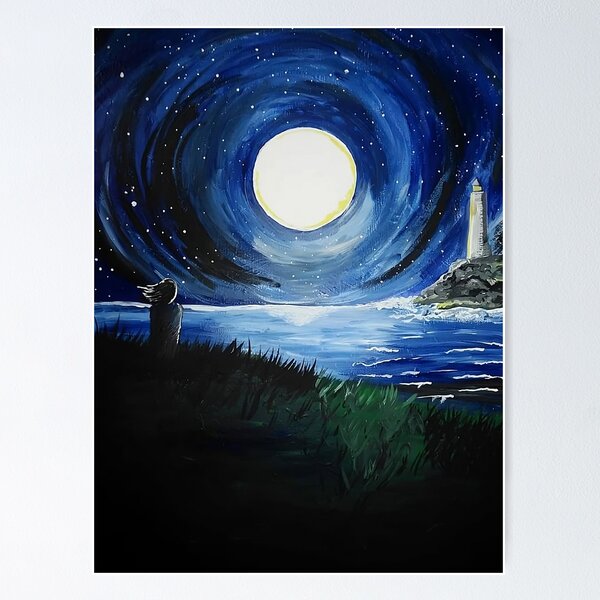 Lienzo de arte de pared de luna llena solitaria, pintura de ...