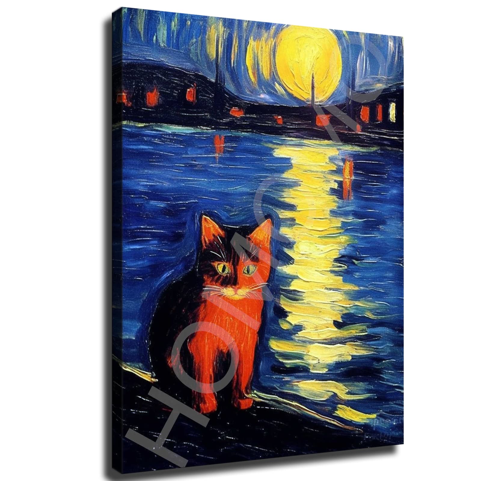 Bonito gato en la noche solitaria Edvard Munch - Póster para ...