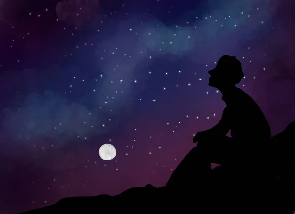 Silueta Hombre Solitario Sobre Fondo Del Cielo Estrellado Nocturno ...