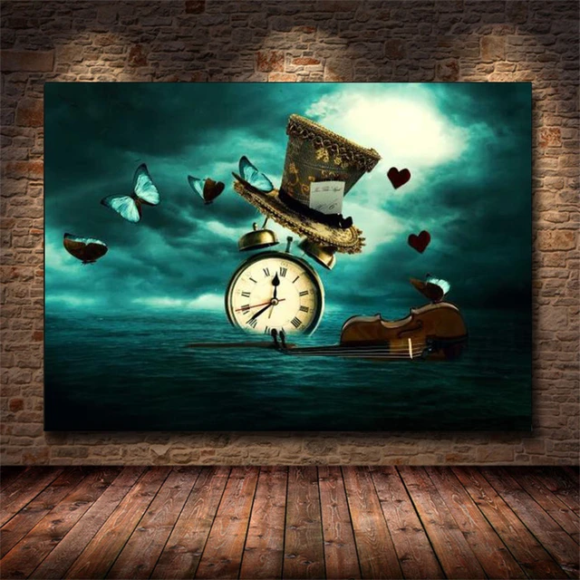 Reloj de violín, sombrero de mariposa, Salvador Dalí, Surrealismo, pintura en lienzo Retro creativa, carteles, impresiones, imágenes artísticas de pared, decoración del hogar - AliExpress