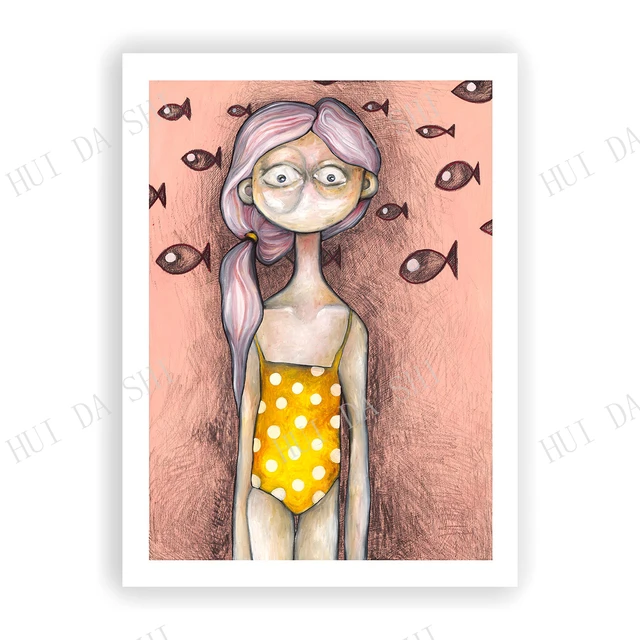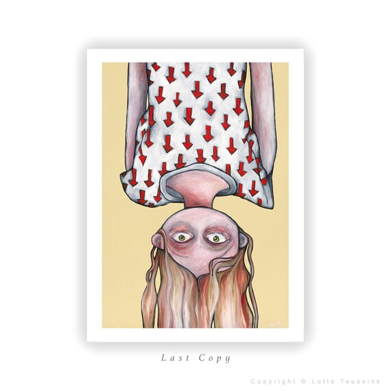 Impresión de arte Up Side Down Pintura original de la artista holandesa Lotte Teussink Impresión de arte de chica peculiar Arte surrealista pop Arte lowbrow para habitación de niños - Etsy España