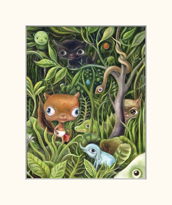 Big Eye Art Print, Pintura de la jungla, Arte animal, Lowbrow Art, EVK - Etsy España