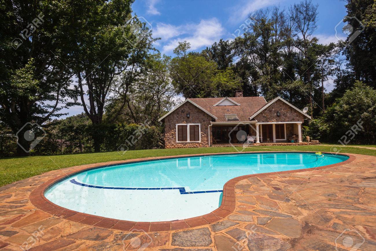 Casa Casa De Campo Con Piscina Rodeada De Árboles Fotos, retratos, imágenes y fotografía de archivo libres de derecho. Image 24325367