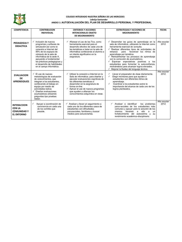 Anexo 1 Plan de Desarrollo Personal y Profesional Institucional 2012 Wencel | PDF