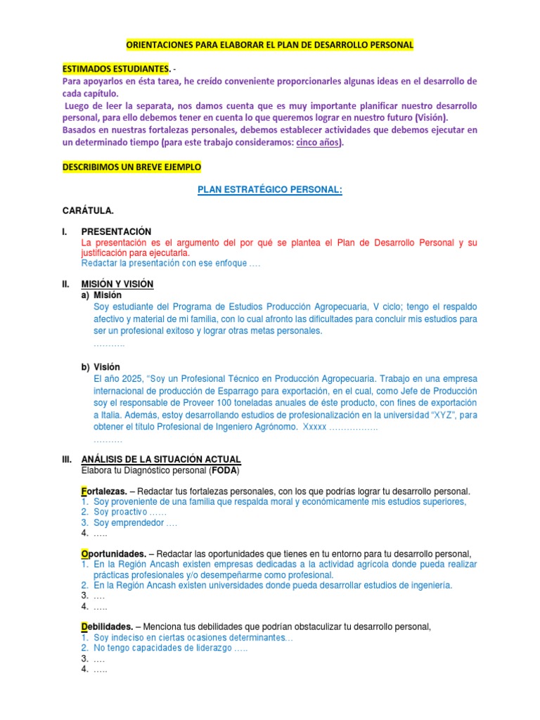 Orientaciones Xra. El Plan Desarrollo Personal | PDF | Desarrollo personal | Economias