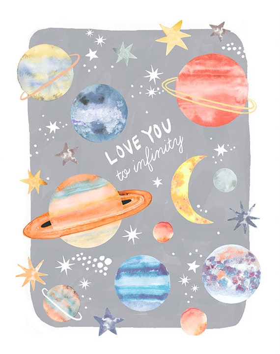 Gris Planetas Estrellas Espacio Exterior Sistema Solar Niños Acuarela Impresión artística Arte de pared - Etsy España