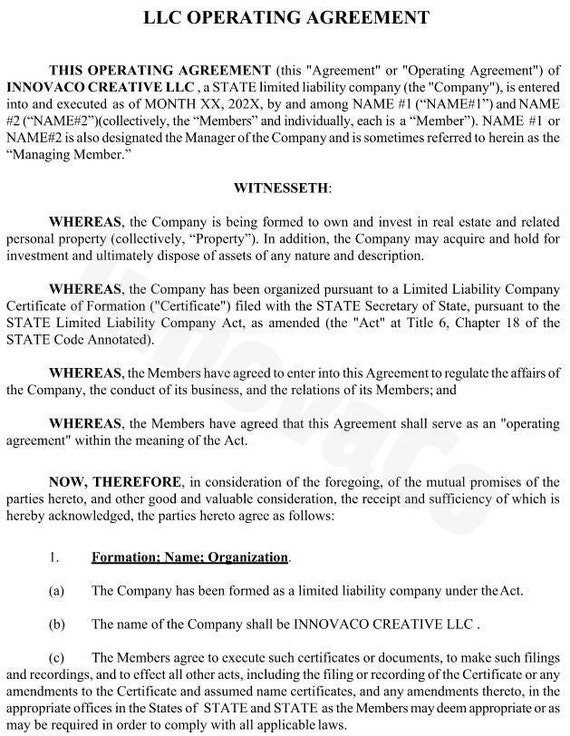 Acuerdo operativo Plantilla LLC Descarga instantánea Acuerdo de ...