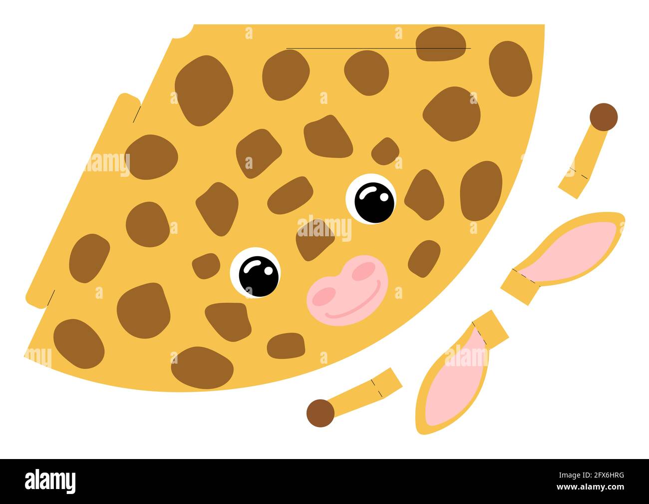Corona De Papel De Jirafa Imprimible. Plantilla De Cinta De Fiesta De Corte Diy Para Cumpleaños, Navidad, Baby Shower. Accesorio Divertido Para El Entretenimiento. Imprimir, Colorear, Cortar Y Pegar. Ilustración De Stock