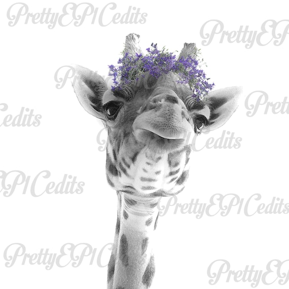 Jirafa con flores moradas en la cabeza, imagen digital imprimible, PNG, JPG - Etsy México