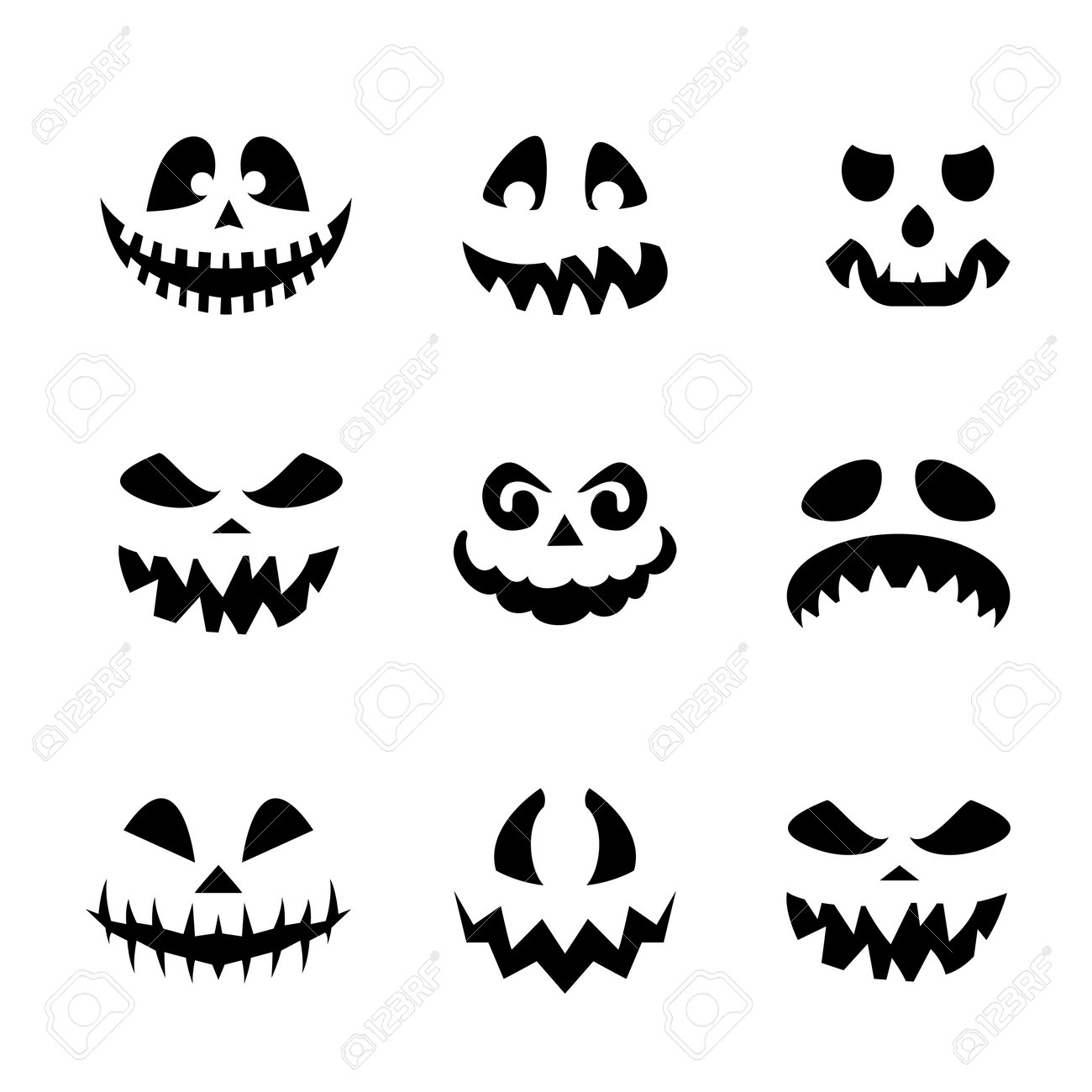 Caras De Calabaza O Fantasmas, Plantilla Simple En Blanco Y Negro Ilustración del Vector - Ilustración de horror, plano: 161798977