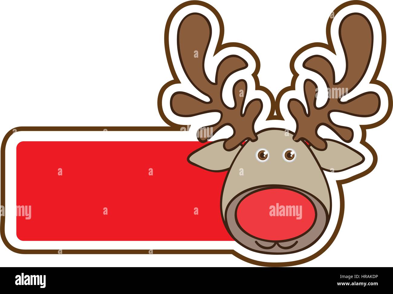 Adhesivo con el banner con cara de reno animales de navidad Imagen Vector de stock - Alamy