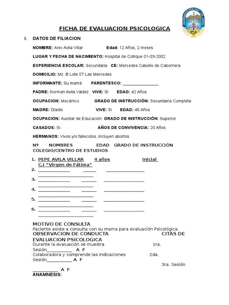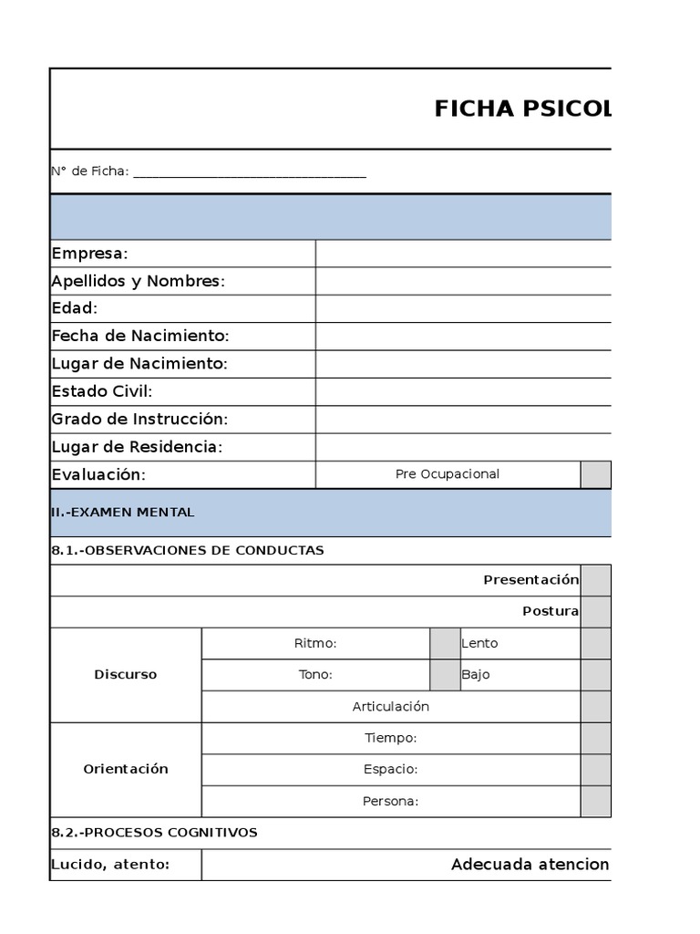 Ficha de Evaluacion Psicologica | PDF | Medicina CLINICA | Medicina