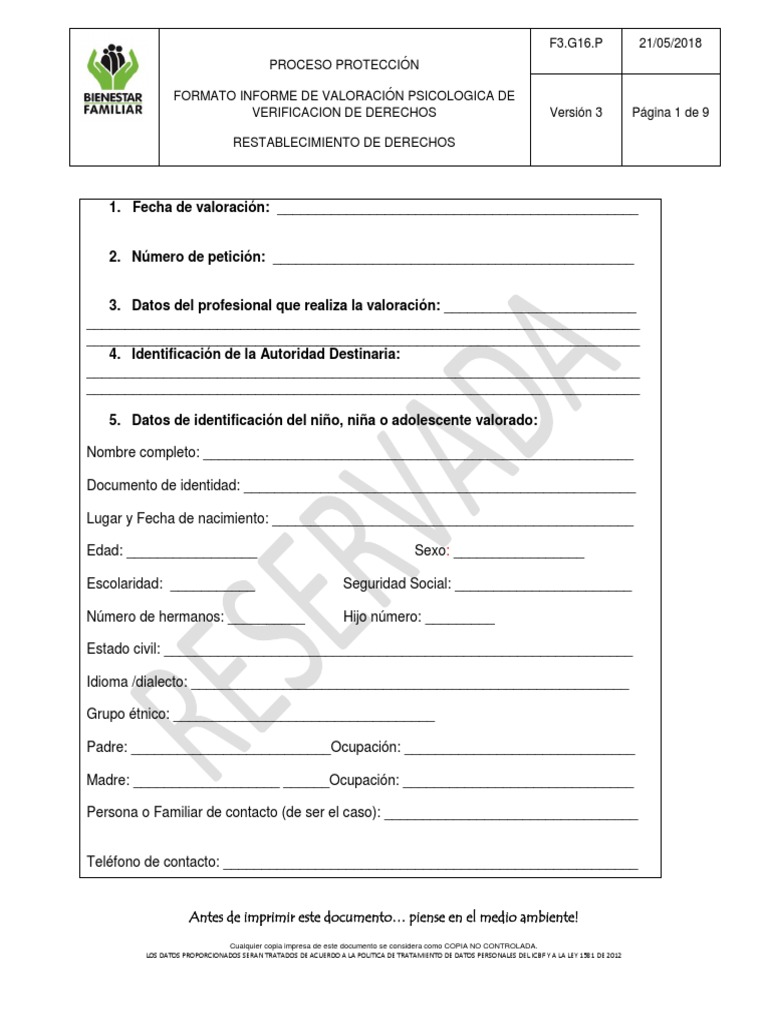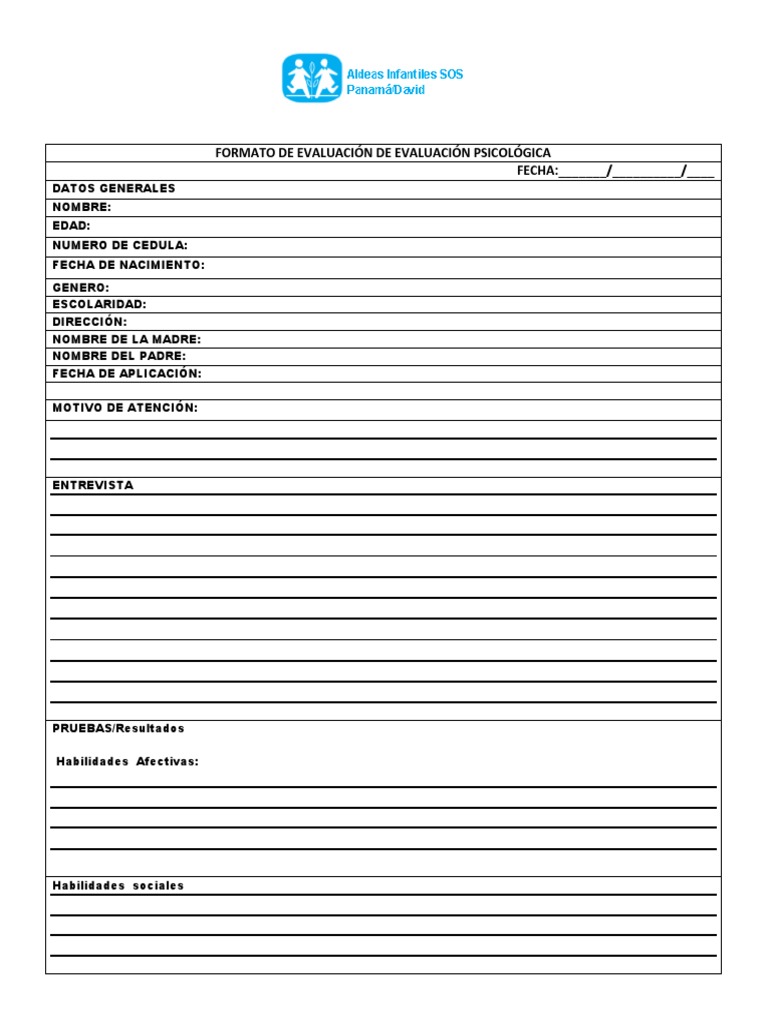 Formato evaluacion psicologica | Guías, Proyectos, Investigaciones de Seguridad en el Lugar de Trabajo | Docsity