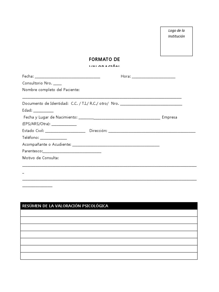 Plantilla Evaluacion Psicologica | PDF | Economias