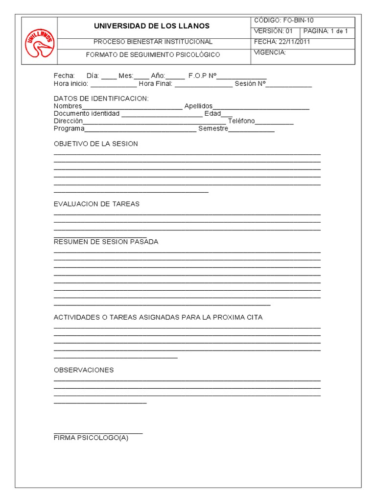 FORMATO DE ENTREVISTA INICIAL Y SEGUIMIENTO PSICOLÓGICO