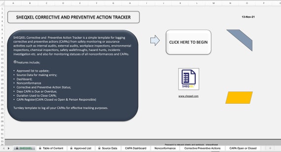 Seguimiento de acciones correctivas y preventivas / Panel de control de salud y seguridad / Plantilla Excel - Etsy México