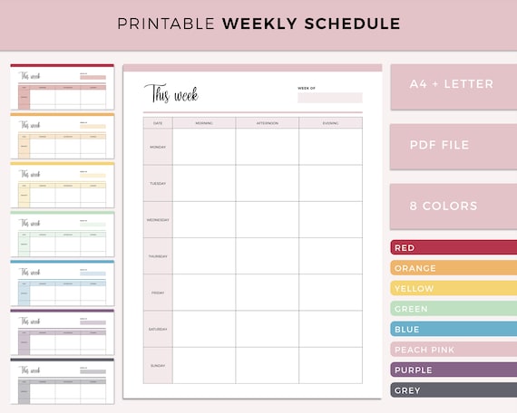 Horario semanal imprimible, plantilla de planificador semanal, organizador semanal, lista semanal de tareas pendientes, planificador semanal en blanco, organizador, semana de un vistazo - Etsy España
