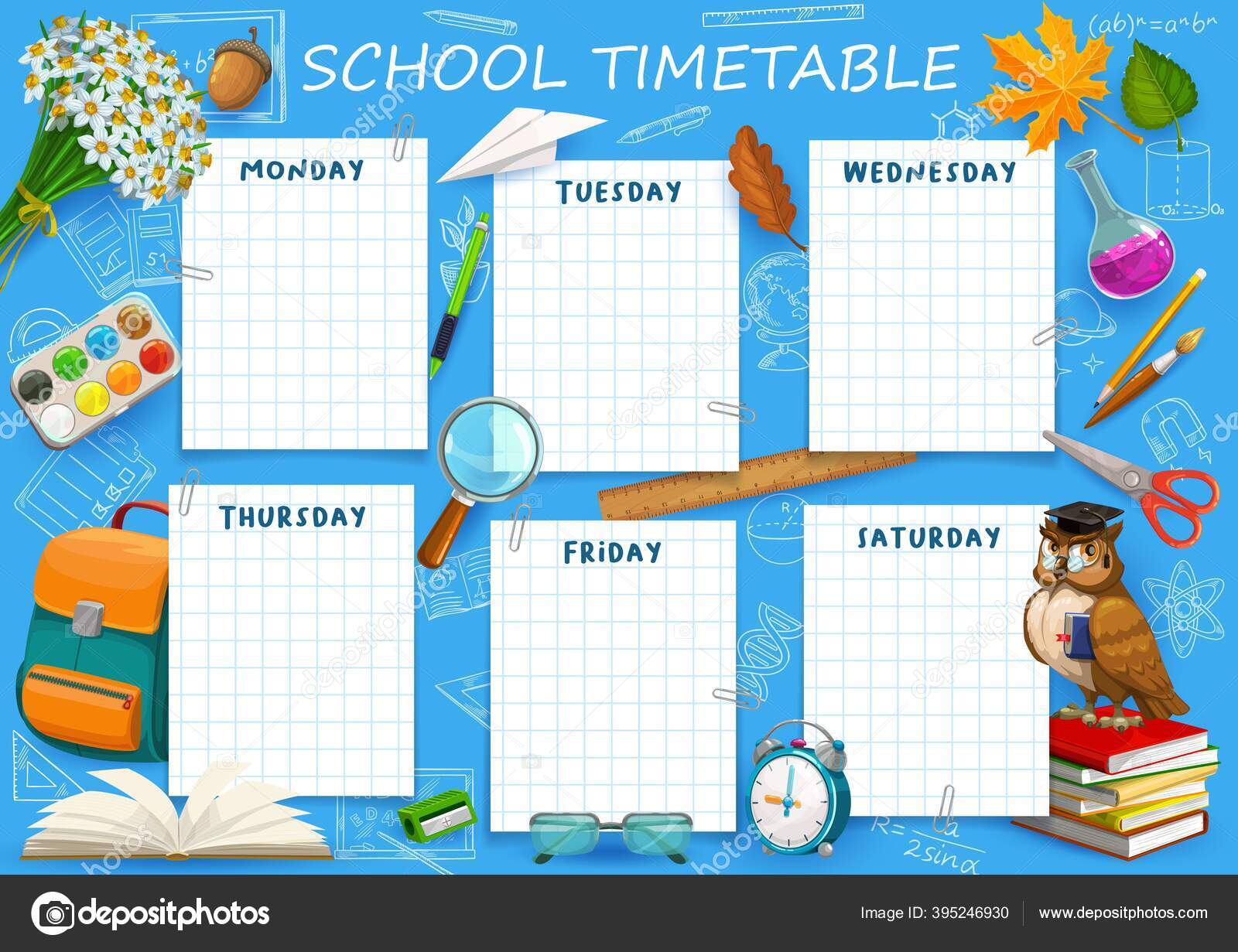 Horario de la escuela. Calendario para los niños. Plantilla vacía. Planificador semanal con notas. Color aislado ilustración vectorial. Curioso personaje. Estilo de dibujos animados Imagen Vector de stock - Alamy