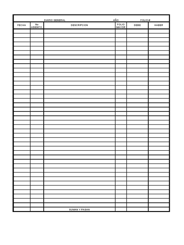 Plantilla libro diario - Apuntes de Contabilidad | Docsity