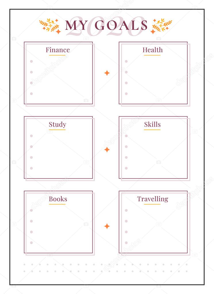 Objetivo 2020 Difundir Diseño Página Planificador Minimalista Gestionar Las Finanzas Vector de Stock de ©TheImg 384944584