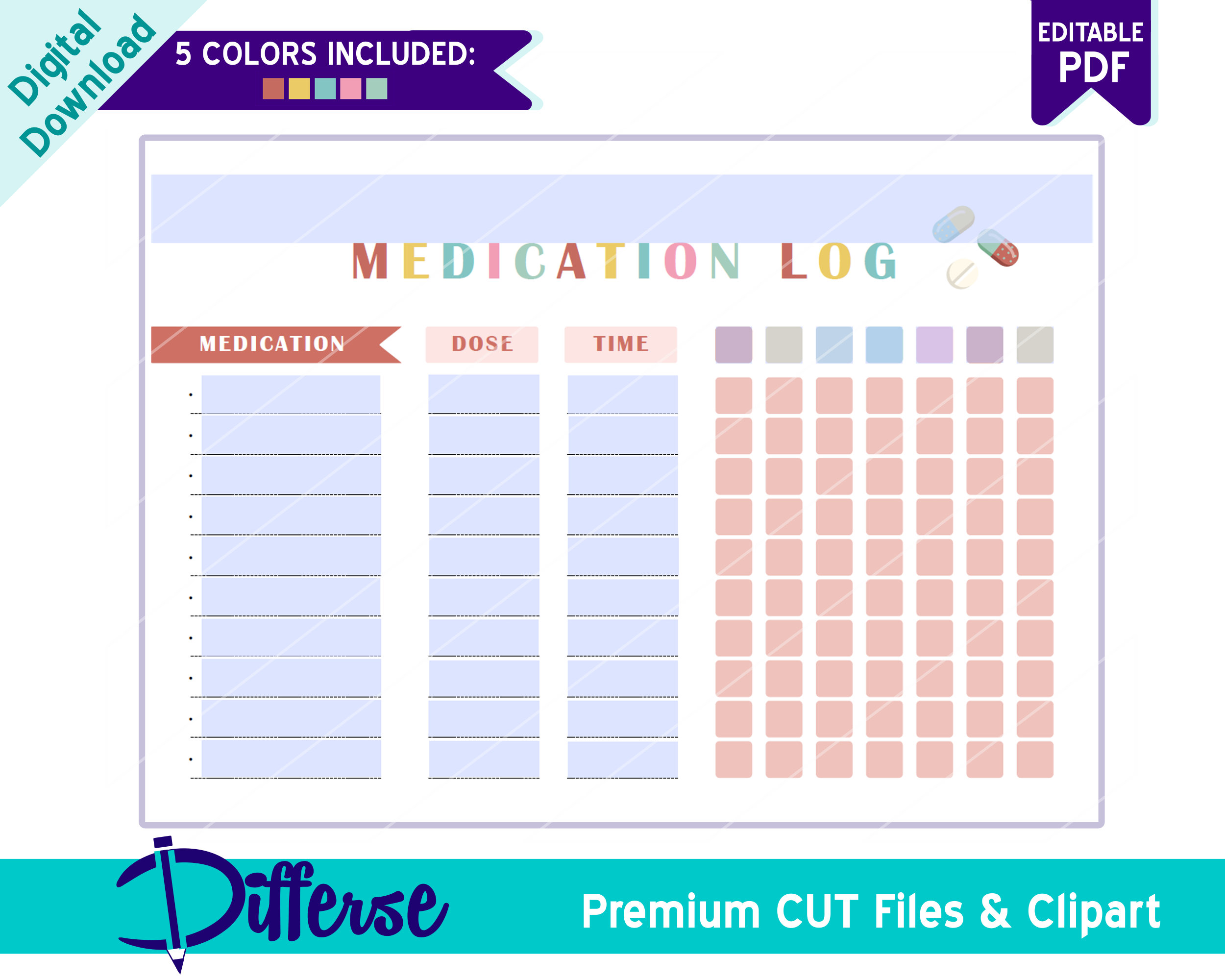 Registro diario de medicamentos / Rastreador de medicamentos / Rastreador de suplementos / Calendario de medicamentos / Lista de medicamentos / Lista de verificación de medicamentos / Tabla de píldoras - Etsy México