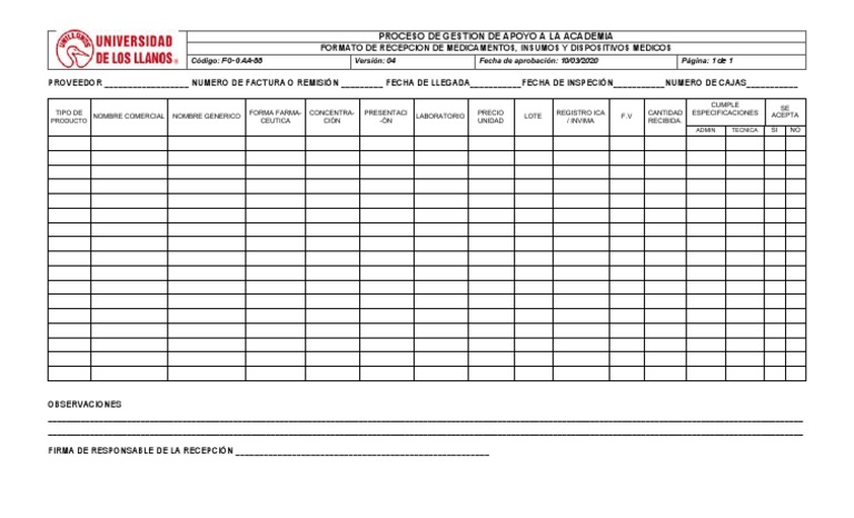 Fo-Gaa-88 Formato de Recepcion de Medicamentos, Insumos y Dispositivos Medicos | PDF