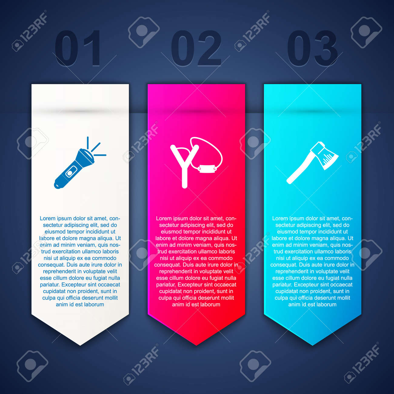 Pon Linterna, Tirachinas Y Hacha De Madera. Plantilla De Infografía Empresarial. Vector Ilustraciones svg, vectoriales, clip art vectorizado libre de derechos. Image 158109491