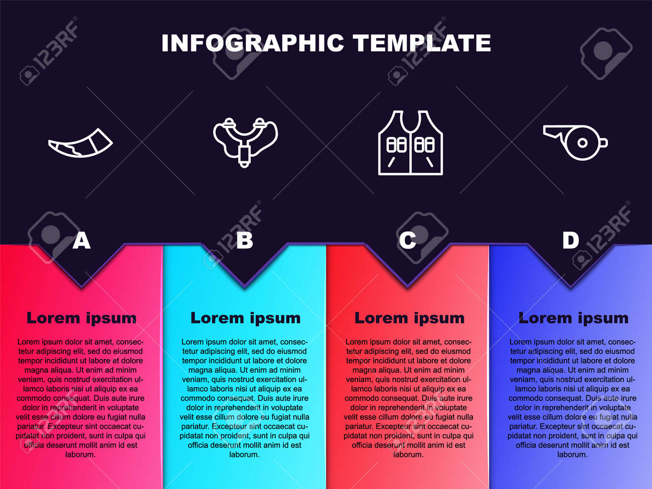 Fije La Línea Cuerno De Caza, Tirachinas, Chaqueta Y Silbato. Plantilla De Infografía Empresarial. Vector Ilustraciones svg, vectoriales, clip art vectorizado libre de derechos. Image 180777903