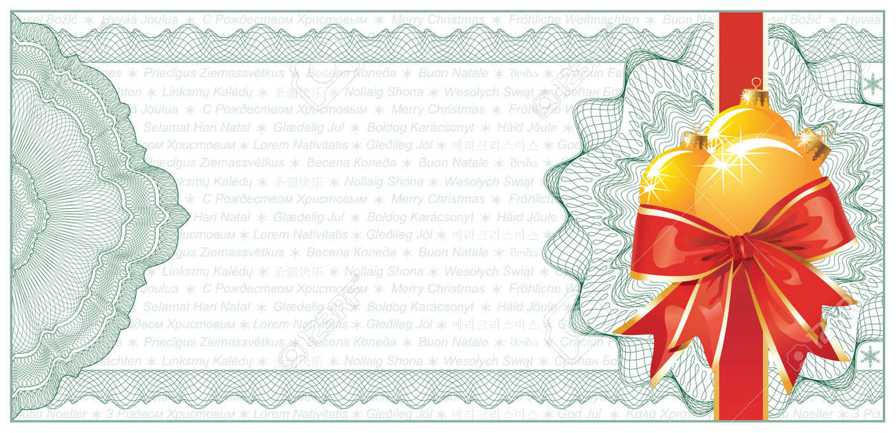 Plantilla De Certificado De Regalo De Navidad Oro O Cupón De Descuento Con Texto Ilustraciones svg, vectoriales, clip art vectorizado libre de derechos. Image 10965998