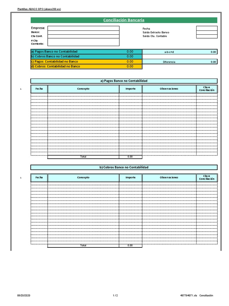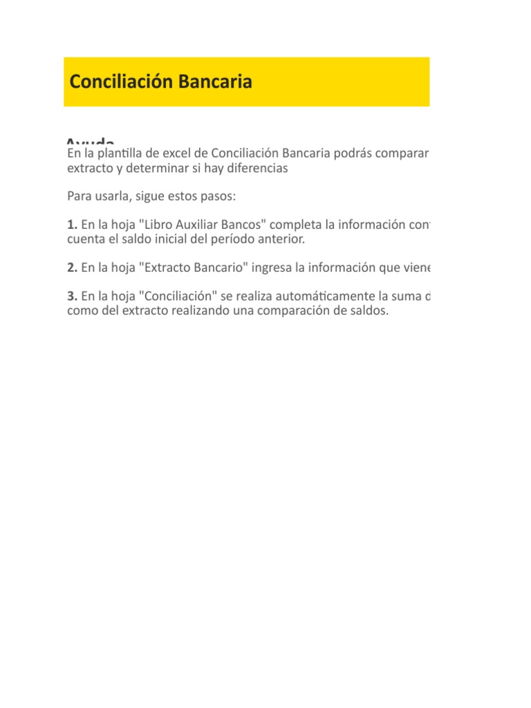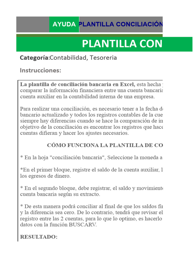 Plantilla de Excel para Conciliacion Bancaria | PDF | Contabilidad ...