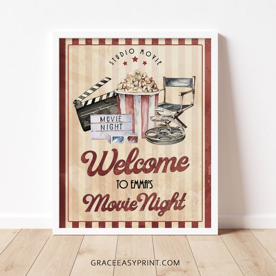 Retro Movie night Cartel de cine retro Carteles cartel de bienvenida cartel editable Plantilla editable cartel de bienvenida de película imprimible de hollywood A4 - Etsy España