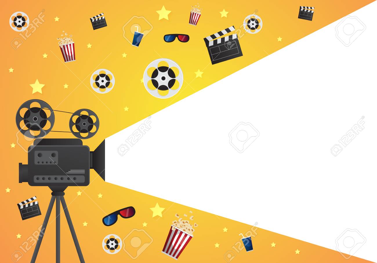 Banner De Cine En Estilo Plano. Banner De Dibujos Animados Amarillo De Tiempo De Película. Plantilla Para Cartel De Cine. Caricatu Ilustración del Vector - Ilustración de concepto, modelo: 217809027