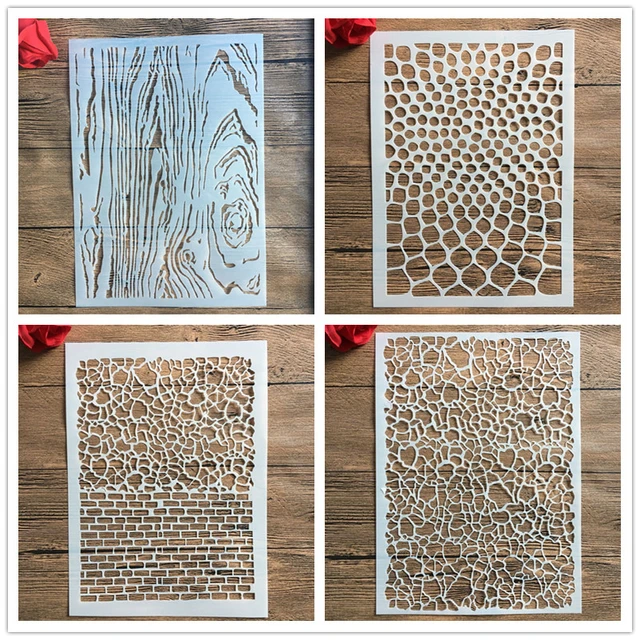 Plantillas de patrones geométricos de grano de madera para pintar, plantillas para colorear, álbum de recortes en relieve, plantilla decorativa, 4 unids/set por juego