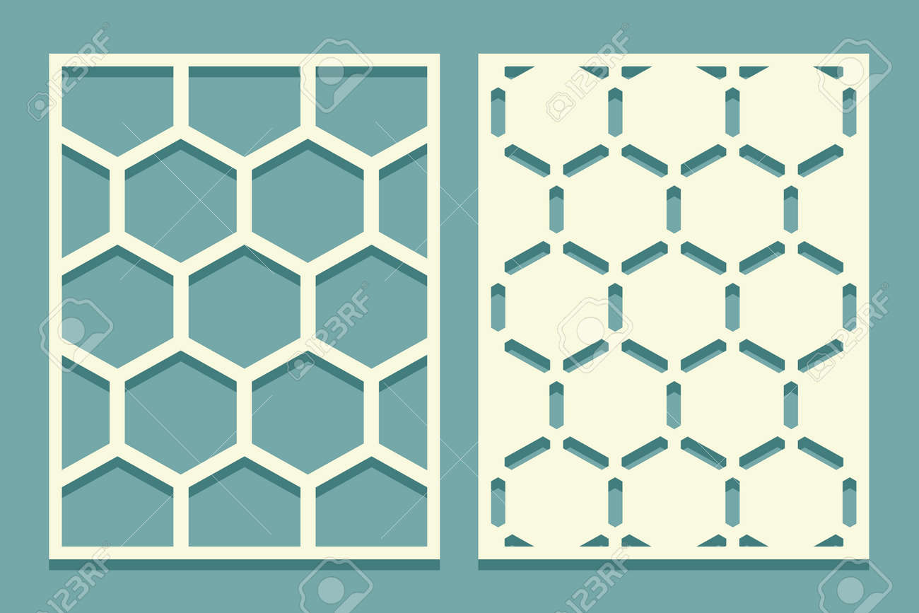 Conjunto De Plantillas De Corte. Paneles De Pantalla Troquelados Y Cortados Con Láser. Plantilla Con Patrón De Panales Para Dibujar, Enlucir Y Pintar Paredes O Pisos. Conjunto De Patrones Directos E Inversos