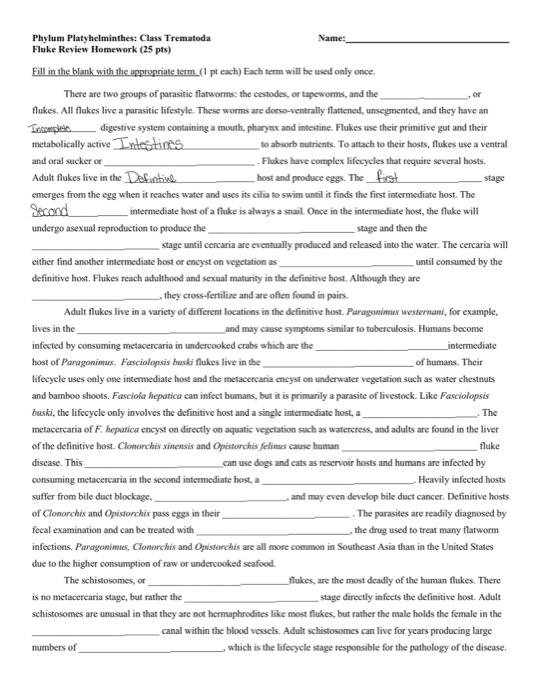 Solved Name: stage Phylum Platyhelminthes: Class Trematoda | Chegg.com
