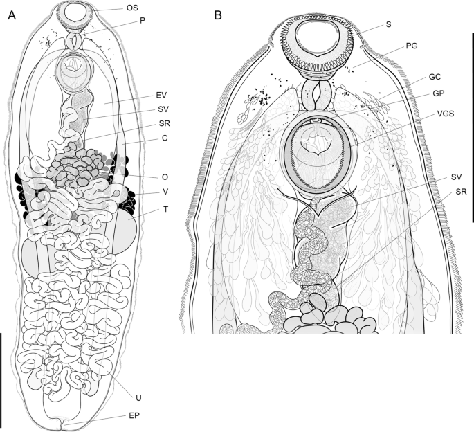 Representantes de la fauna mexicana de Platyhelminthes. A, Trematoda:... | Download Scientific Diagram