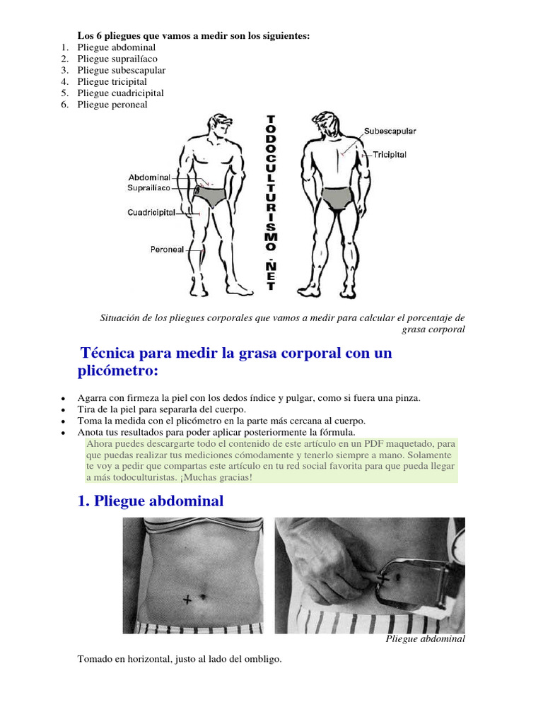 Evaluación de Pliegues Cutáneos | Descargar gratis PDF | Tejido ...