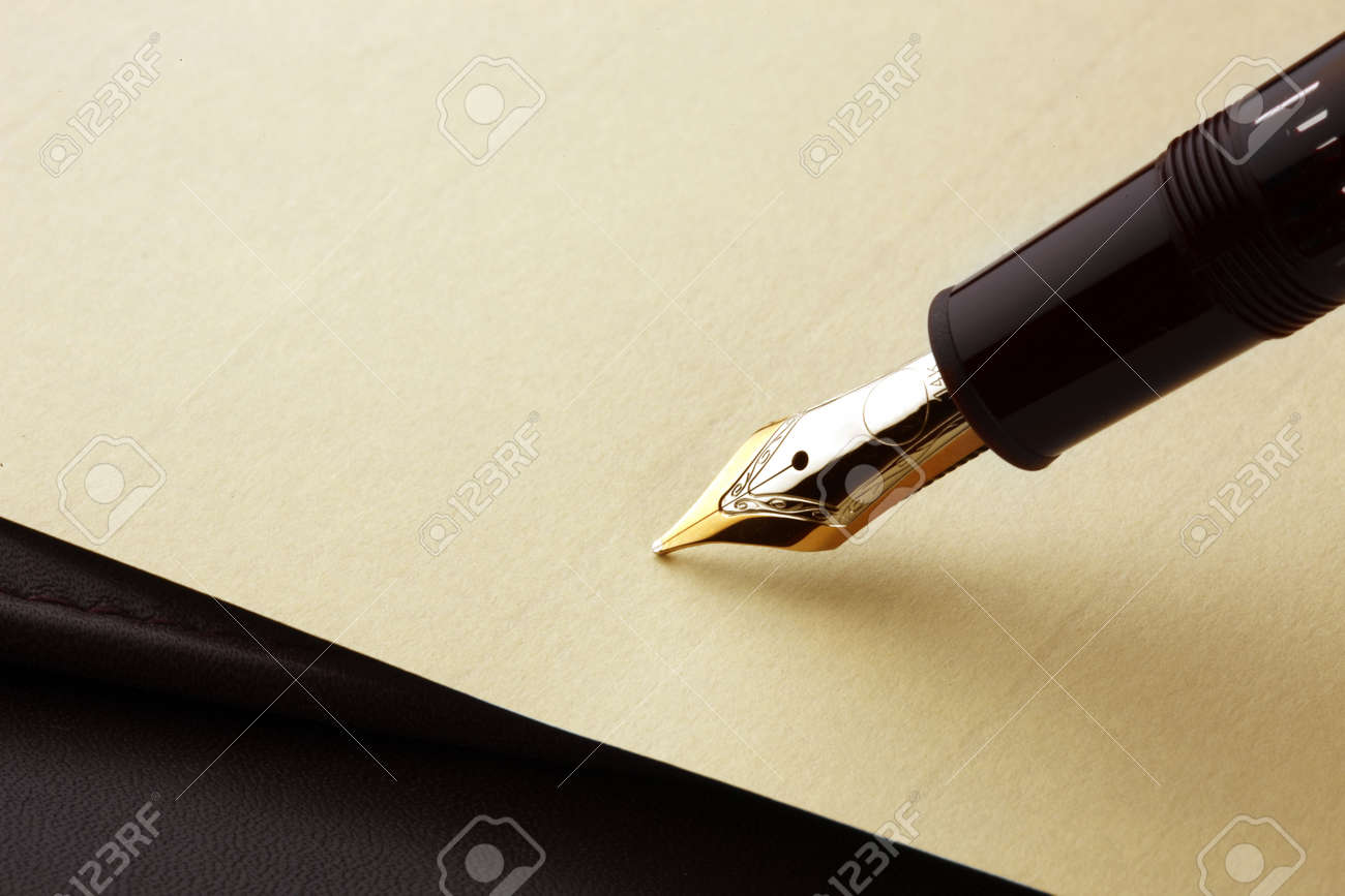 Pluma Estilográfica En La Hoja De Papel, Texto Del Primer Fotos, retratos, imágenes y fotografía de archivo libres de derecho. Image 27643160