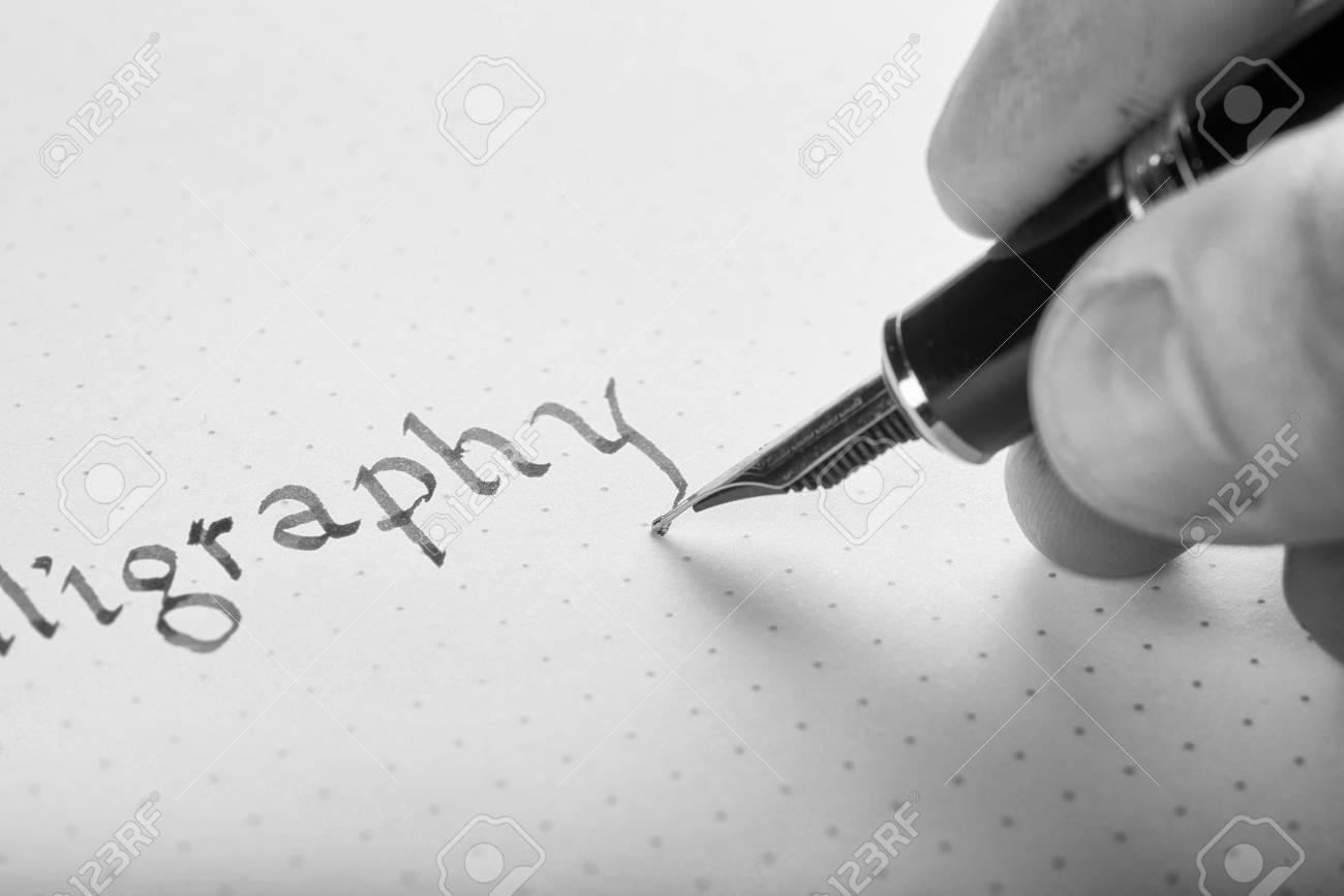 Mano Sosteniendo Una Pluma Estilográfica Para Escribir En Papel Fotos, retratos, imágenes y fotografía de archivo libres de derecho. Image 80398791