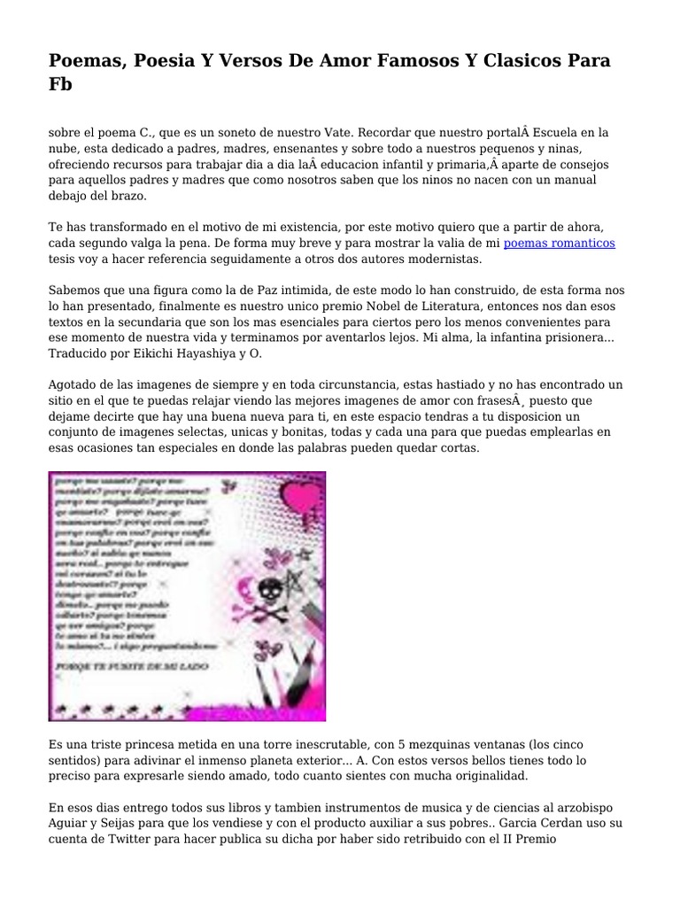 Poemas, Poesia Y Versos de Amor Famosos Y Clasicos para FB | PDF | Poesía | Amor