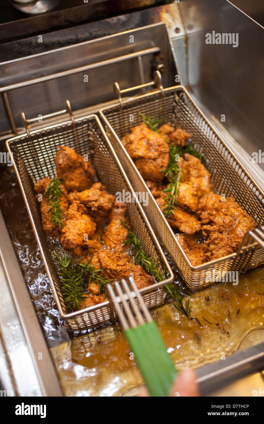 Pollo frito en la freidora Fotografía de stock - Alamy