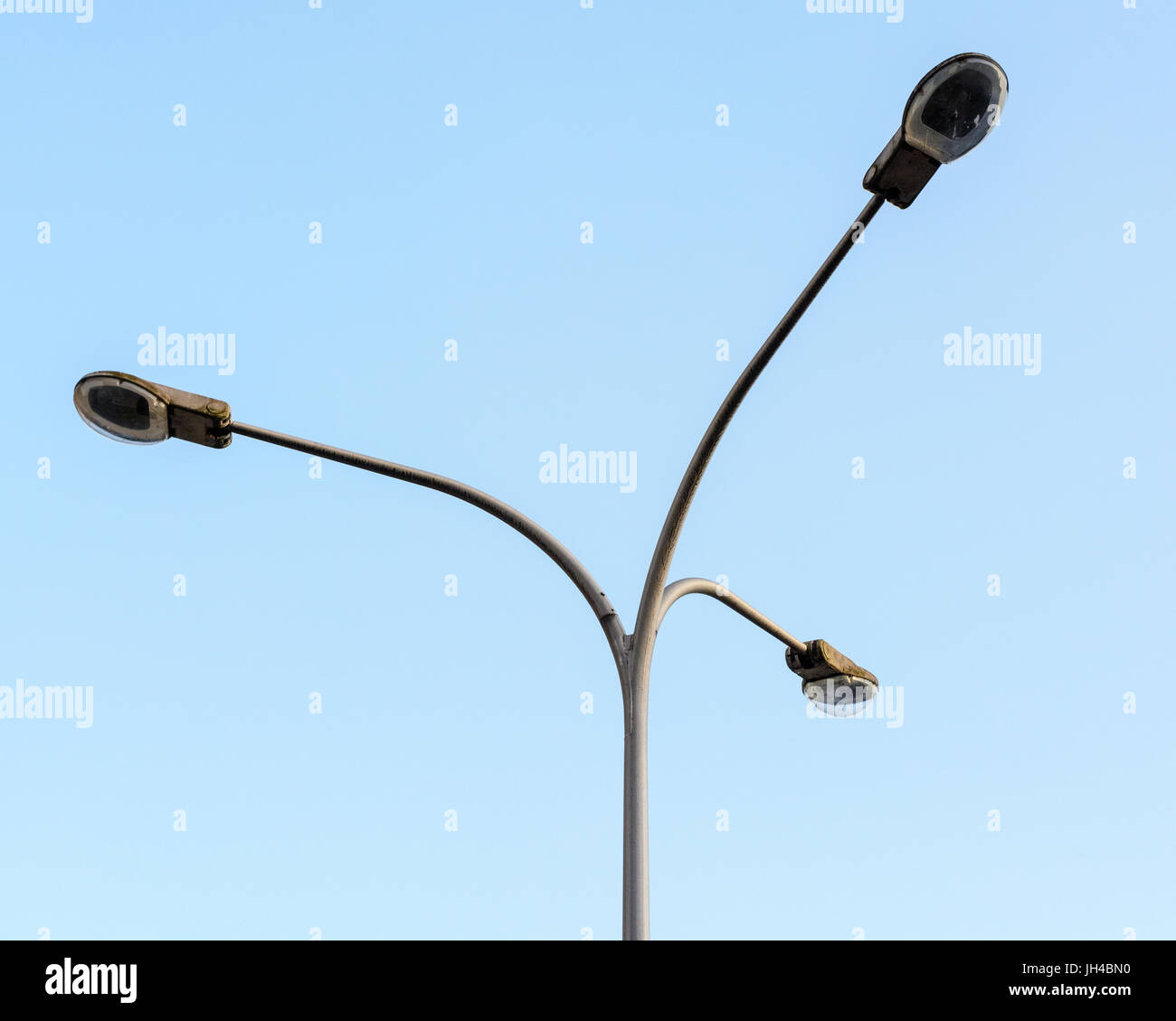 Poste de luz de la calle Vintage con tres lámparas contra el cielo azul Fotografía de stock - Alamy