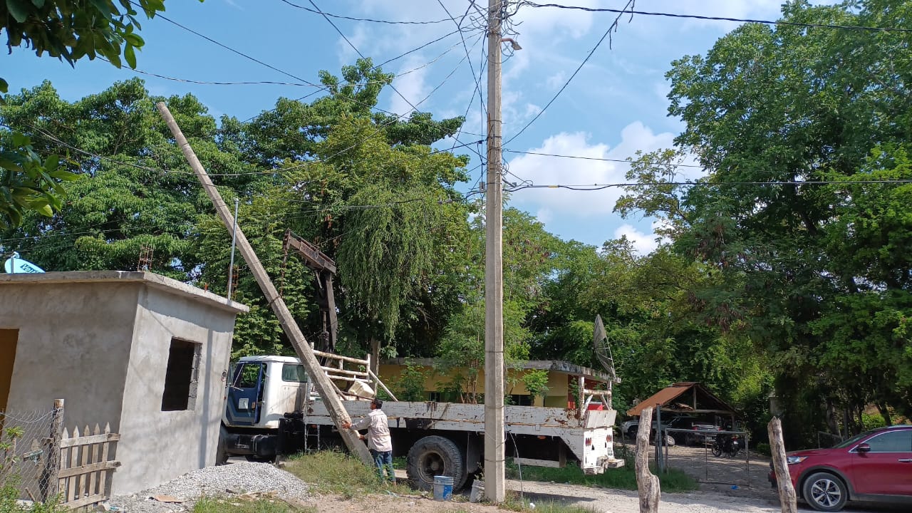 Cae un poste de luz en medio de una calle de Santa Gertrudis