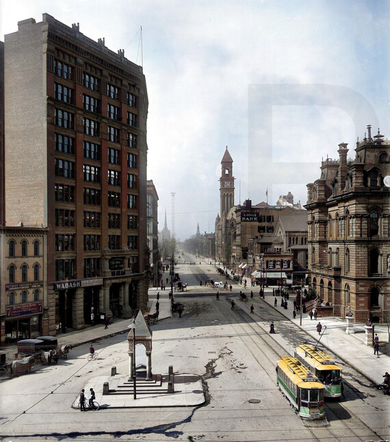 1890 Campus Martius Detroit. Al final de la calle un poste - Etsy España