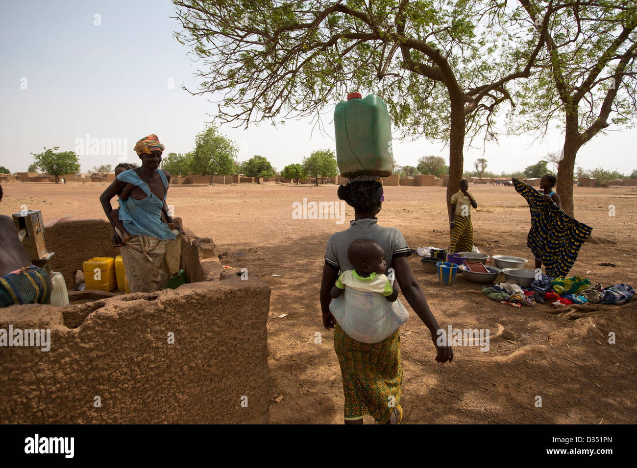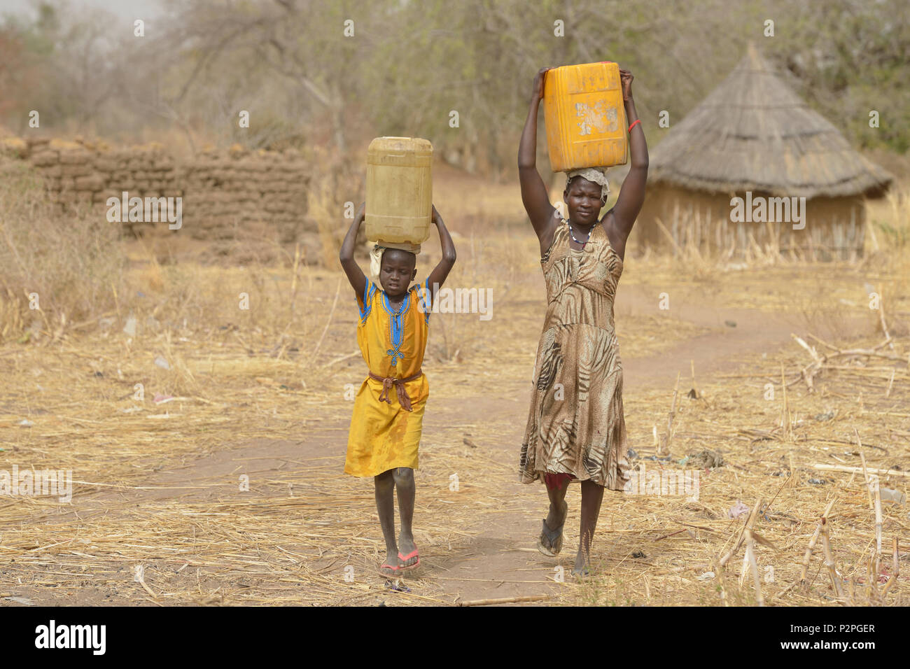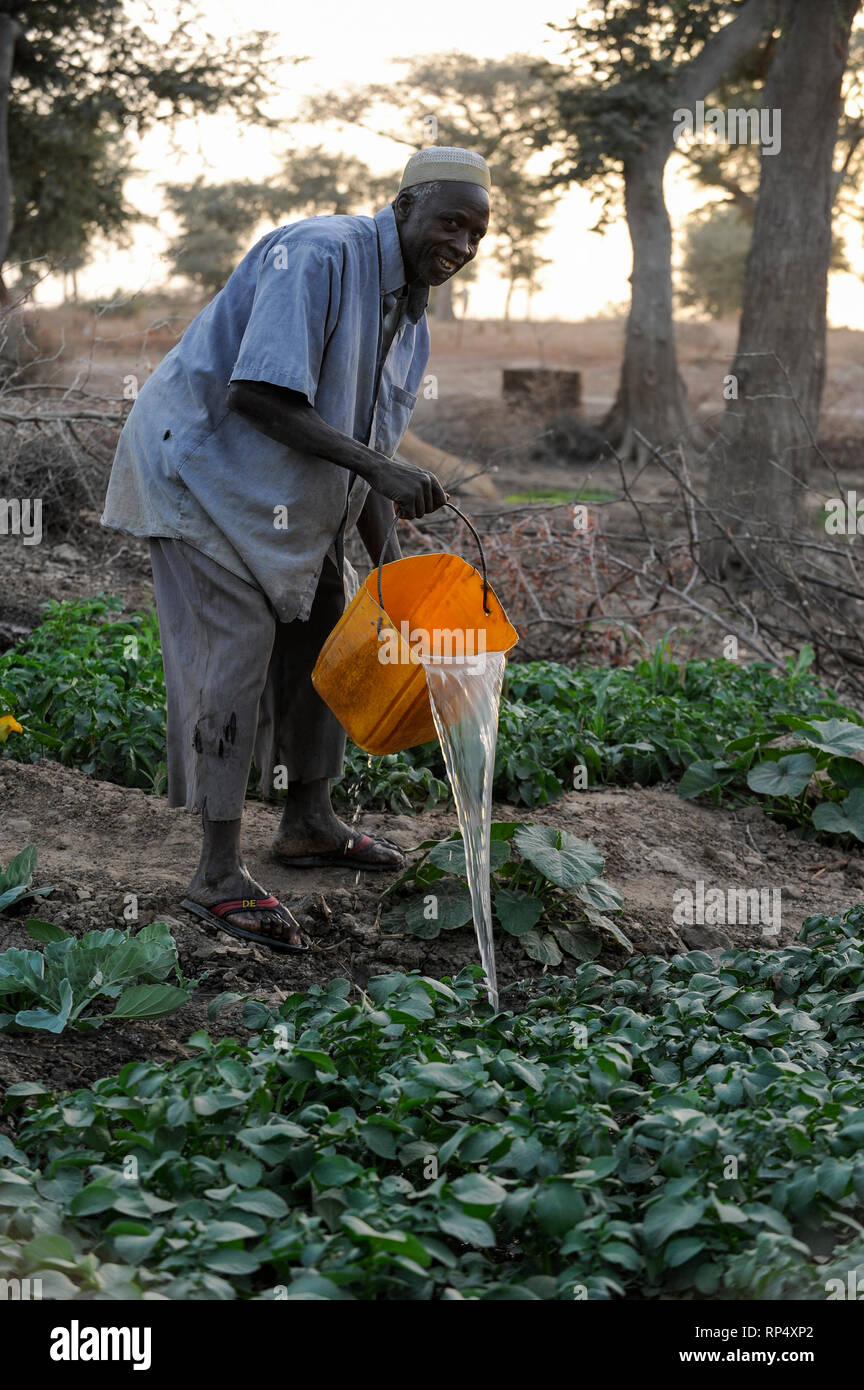 NÍGER, Sahel, Zinder, pueblo Baban Tapki, seguridad alimentaria y proyecto de resistencia a la sequía de Caritas, riego de huertas de agua de pozo con una lata de riego de plástico jerry