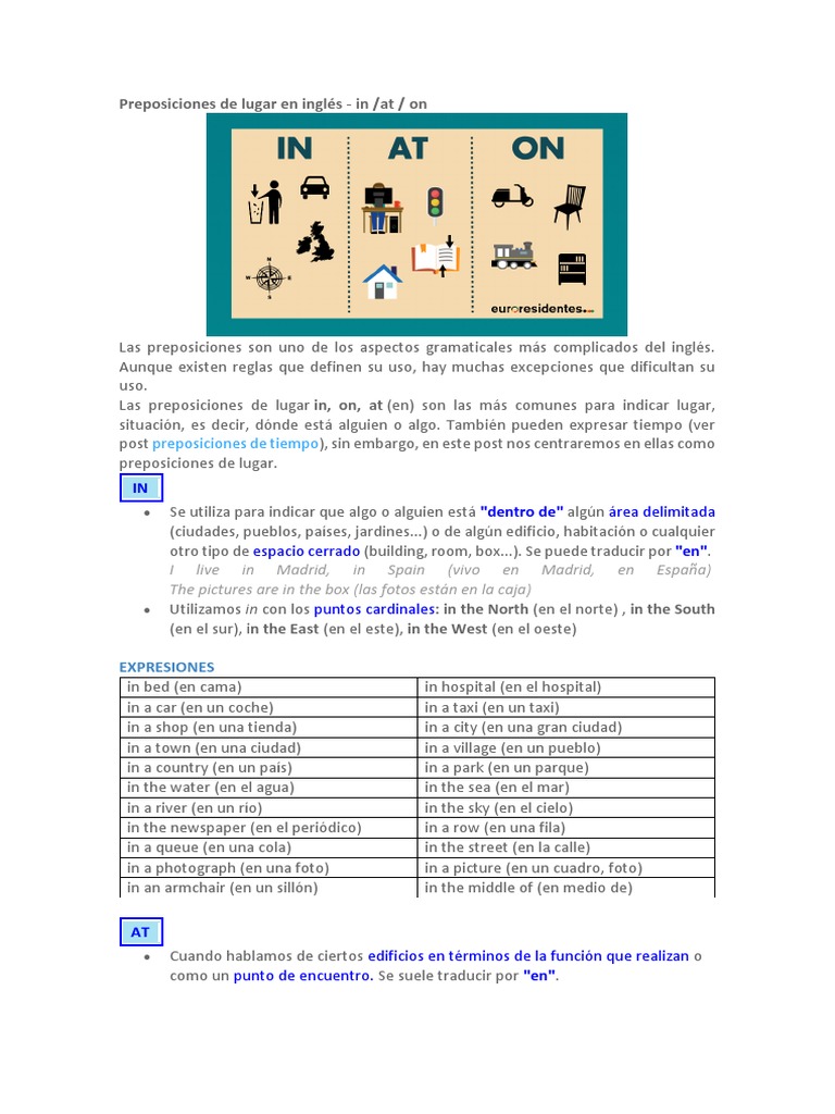 Las preposiciones de tiempo y lugar AT – IN – ON – Eingleses
