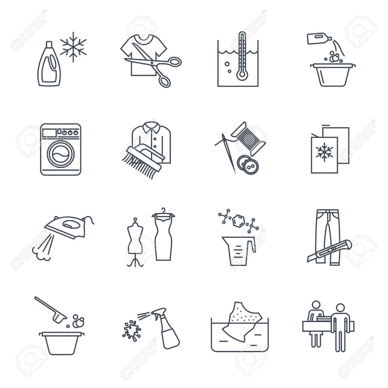 Conjunto De Iconos De Línea Delgada Proceso De Producción De Limpieza Y Lavado De Ropa Seca Ilustraciones svg, vectoriales, clip art vectorizado libre de derechos. Image 69009042