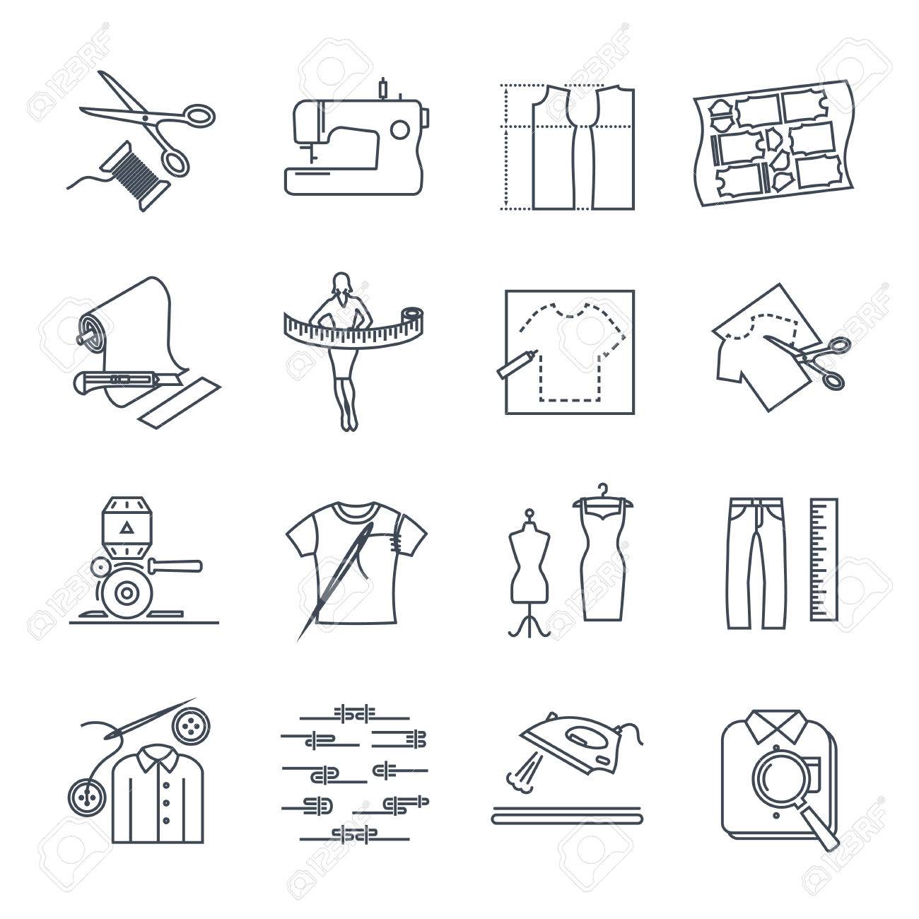 Conjunto De Iconos De Línea Fina Ropa, Ropa, Confección De Ropa, Proceso De Costura Ilustraciones svg, vectoriales, clip art vectorizado libre de derechos. Image 69918891